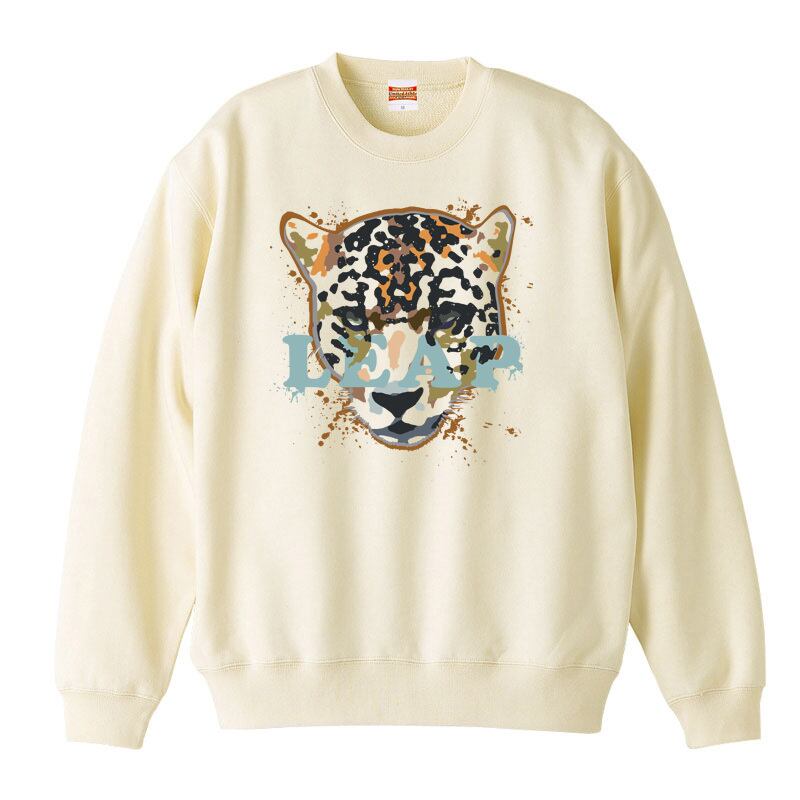目を引くヒョウのグラフィックと鋭いを意味する「LEAP」の文字が融合したクールなデザイン